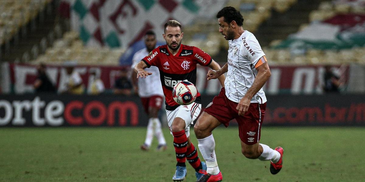 Alexandre vidal / flamengo fred disputa a bola com diego na final do carioca 2021.